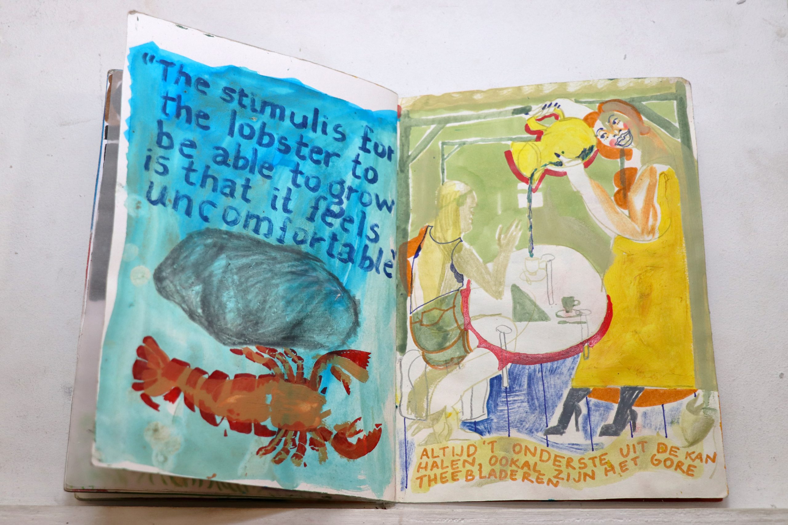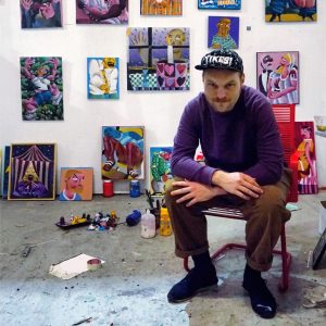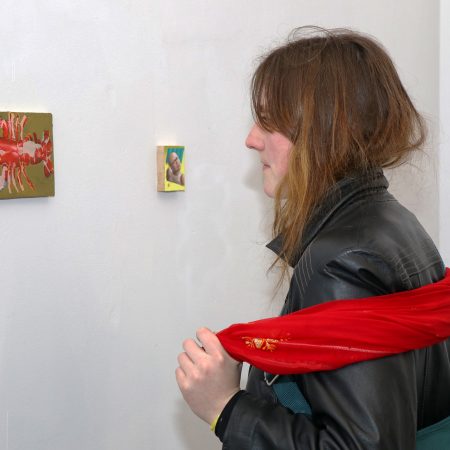 De Vlaamse kunstenaar Pieter Chanterie (1996) toonde met The Lobster’s Lodge zijn kleine, eclectische schilderwerkjes die allemaal hun eigen verhaal vertellen. Hij creëert zijn eigen visuele universum en laat zich inspireren door uiteenlopende onderwerpen als het circus, kabouters en het observeren van het leven om hem heen.