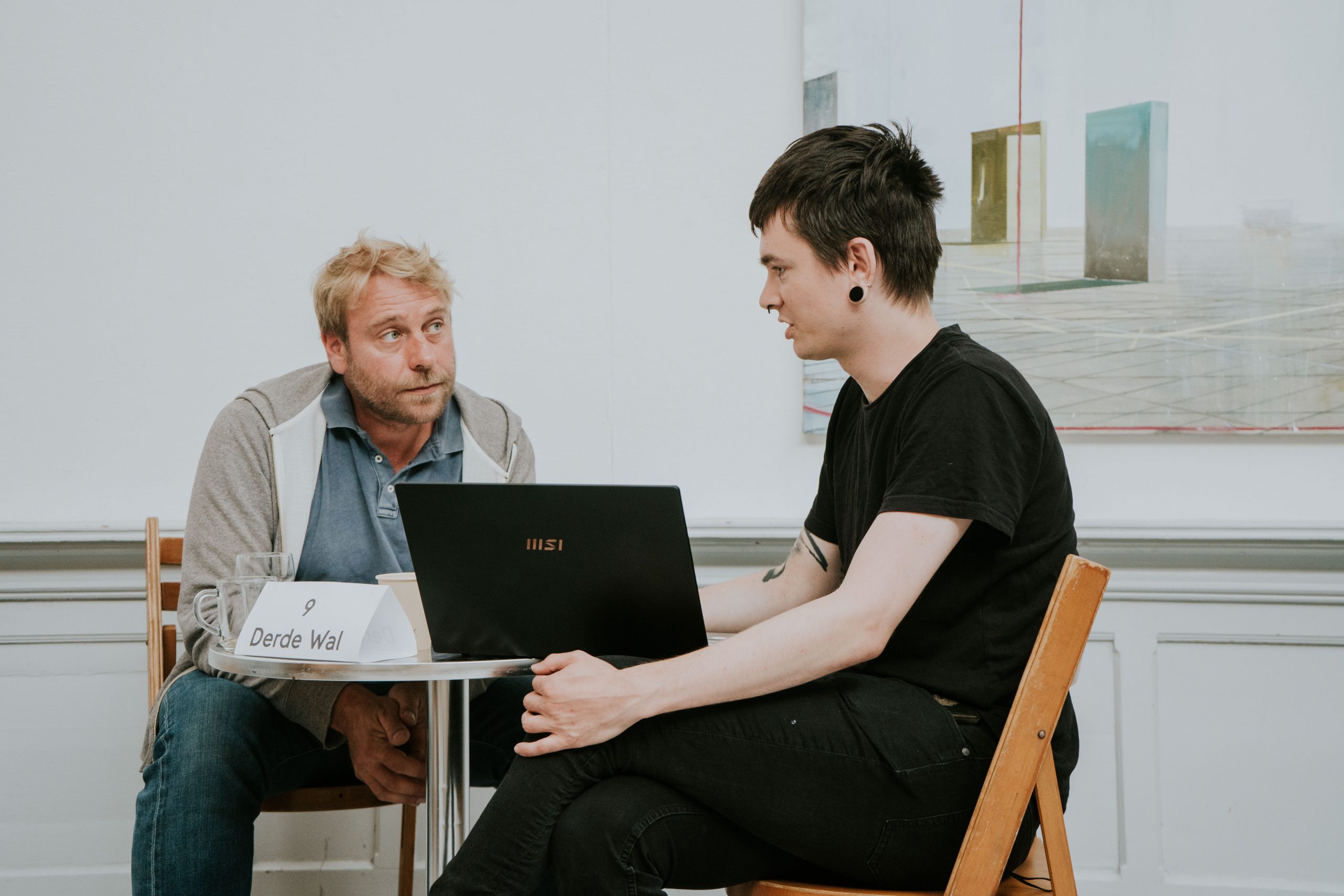 Het is natuurlijk jammer dat wanneer het werk wordt opgehangen, er verder niemand bij aanwezig is. Maar zodra er meer mogelijk is, hangt het werk al daar en is het direct beschikbaar voor publiek.