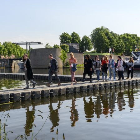 Deze woorden koos Bouke Bruins voor zijn kunstwerk met de titel TEGEN-STRIJDIG. Op elf locaties langs de Zuiderwaterlinie dwong Bruins het publiek om telkens vanuit een ander perspectief te kijken.